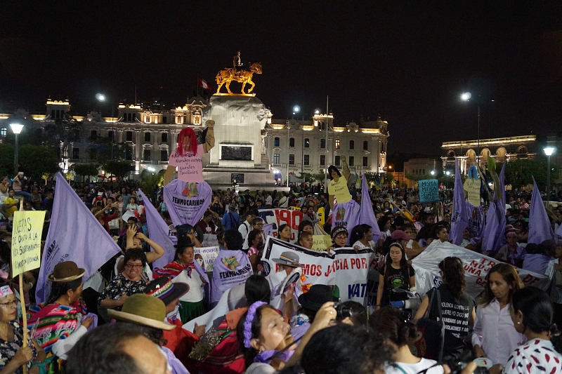In den Reden wurden viele Zahlen und Fakten genannt und vor allem Forderungen an den peruanischen Staat gestellt. 149 Femizide (Frauenmorde) gab es demnach im Jahr 2018 zu beklagen und alleine in den ersten zwei Monaten dieses Jahres 30 weitere. Stündlich würden drei sexuelle Belästigungen gemeldet. In den letzten fünf Jahren gab es 124370 Anklagen wegen sexueller Gewalt - davon 83,4 % an Minderjährigen. Gerechtigkeits- und Präventionspolitik wurde in den Reden gefordert, um Gewalt an Frauen zu verhindern, den Opfern Wiedergutmachung zu garantieren und die Täter zu bestrafen. "Wir fordern die Achtung und Einhaltung unserer Rechte und die aller Gemeinschaften, weil wir ein Recht auf ein menschenwürdiges Leben haben." Auch die Legalisierung von Abtreibung wurde angesichts der strengen Abtreibungsregelungen in Lateinamerika gefordert.