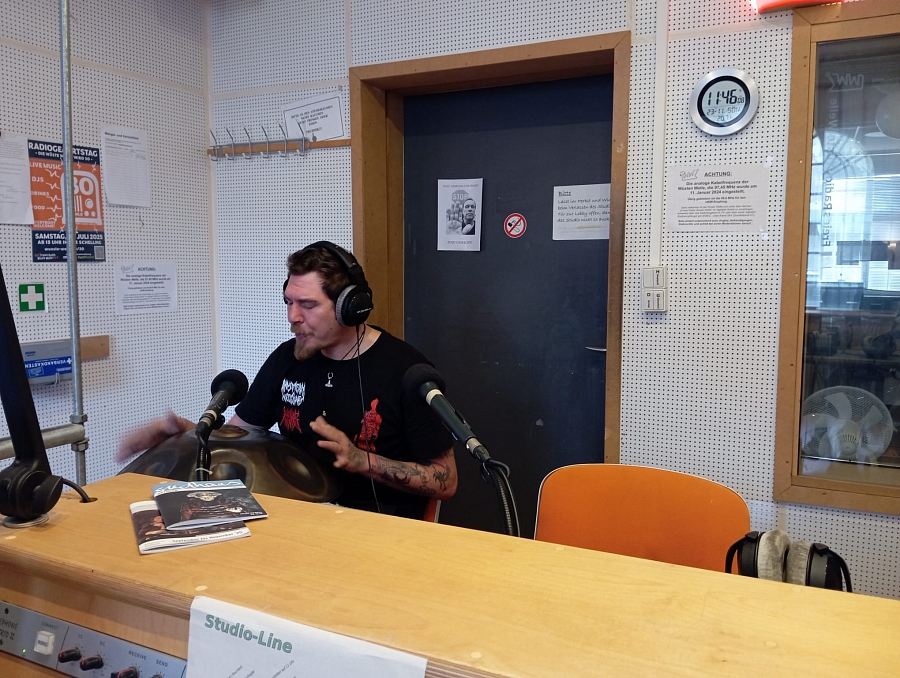 Mit seiner eigenen Handpan (ganz schön teuer so ein Instrument) spielt er sogar zwei Stücke live bei uns im Studio. Wir durften die ruhige, meditative Wirkung dieser Musik kennenlernen und wünschen euch viel Spaß beim Nachhören.