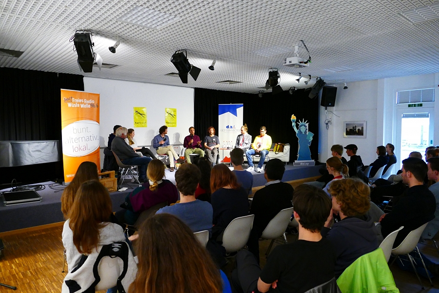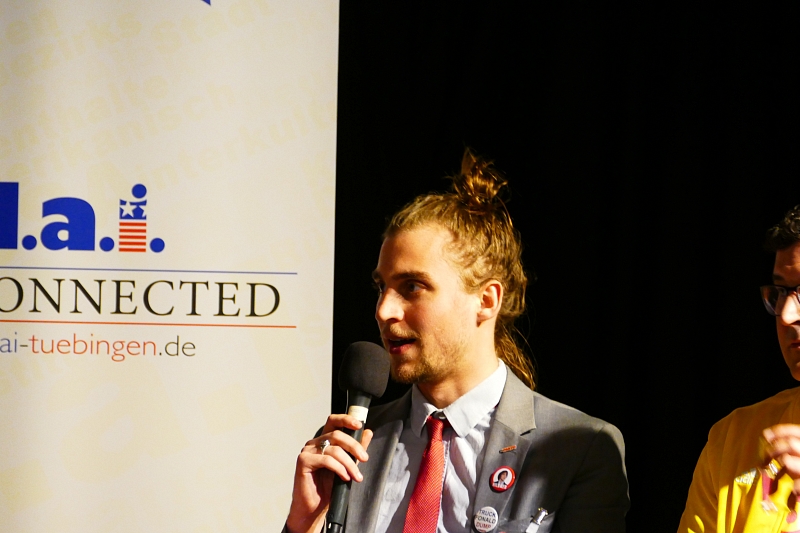 Vor der anstehenden Gemeinderatswahl fand im Deutsch-Amerikanischen Institut eine Podiumsdiskussion zur Jugendpolitik statt. Gastgeber waren das d.a.i., das Ract!festival und das Radio Wüste Welle. Es diskutierten Jonas Kübler (Grüne/AL), Maggie Paal (Die Linke), Julia Silec (SPD), Rudi Hurlebaus (CDU), Kutay Nergues (Tübinger Liste), Stefan Klepp (Demokratie in Bewegung), David Hildner (Die Partei), Robert Pfeilsticker (FDP). Wobei Rudi Hurlebaus der einzige Vertreter ist, der auch Mitglied des Gemeinderats ist. Das Podium wurde moderiert von Steffen Bittner.