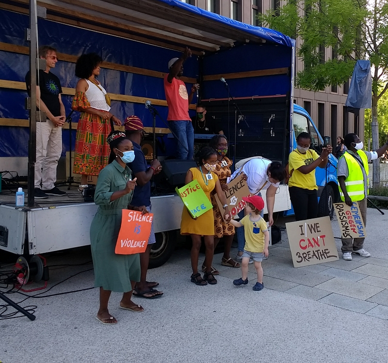 Über ihre Kinder, die erst im Kindergarten erfahren mussten, dass ihre Hautfarbe nicht weiß war und dass das ein Grund für Ausgrenzungen, und Spott sein konnte. Auch die Wut und die Sprachlosigkeit angesichts des Todes von Floyd kam zum Ausdruck. In sechs Schweigeminuten wurde all der toten Schwarzen gedacht, die durch Polizeigewalt ums Leben kamen.
