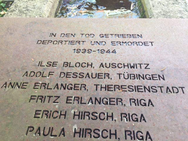 Das Gedenken an den 9. November in Tübingen basiert maßgeblich auf die Recherche von Lili Zapf, die 1974 ihr Buch "Die Tübinger Juden" veröffentlichte. Seit einem künstlerischen Wettbewerb zur Gestaltung eines Denkmals von 1998 gibt es am Ort der ehemaligen Synagoge einen Gedenkort, an dem die Namen der 101 vertriebenen und ermordeten Tübinger Jüdinnen und Juden gedacht werden. Dort sind auch Texte zur Geschichte der Tübinger Synagoge angebracht und seit 2016 ist dort auch die erste Tafel des Tübinger Geschichtspfades.