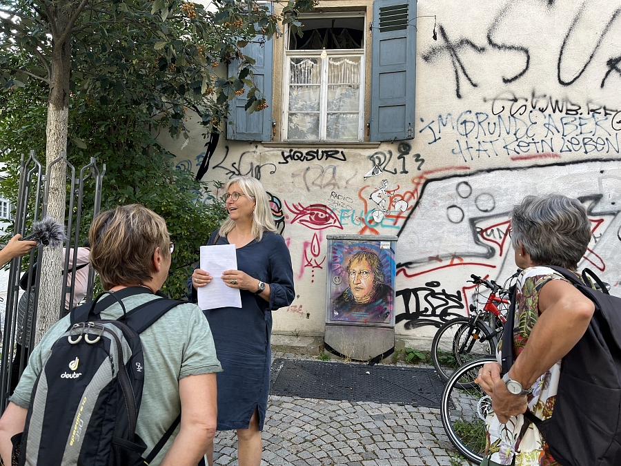 Alle sieben Kunstwerke hat der Künstler an einem Abend gemalt. C215 hat eine besondere Verbindung zu Tübingen, da sein Vater zur Zeit der französischen Besatzung als Soldat stationiert war. Nach Bachmann versteht C215 seine Kunst selbst als Echo aktueller Debatten. Andrea Bachmann erzählt von der Street Art Szene und wie sich diese in den vergangenen Jahren entwickelt hat. Sie erwähnt, dass Kulturzentren Street Art immer mehr zum Anker ihrer Arbeit machen.