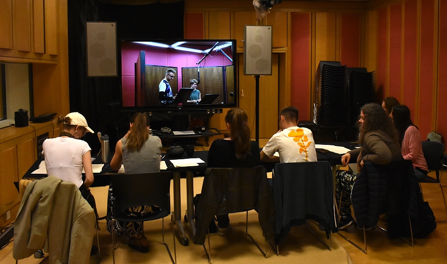 Unser Thema heute: die Kurzhörspiele aus dem Masterstudiengang Medienwissenschaft. Entstanden sind sie im Rahmen einer Kooperation mit dem SWR im altehrwürdigen Hörspielstudio auf dem Tübinger Österberg. Leider nun das letzte Mal, denn das letzte Stündlein des Altbaues aus den 1950er Jahren hat schon geschlagen. Das neue Gebäude steht schon und Hörspielproduktionen sind darin leider nicht vorgesehen. Das tolle an dem alten Studio: Es gab sehr viele Möglichkeiten, Geräusche während des Spielens zu erzeugen: Ein paar Tritte in den Haufen mit Bandsalat aus alten Tonbändern und schon meint man durch Herbstlaub zu schreiten. An einer Ecke gab es Sand und eine Hacke für Baustellengeräusche und eine Holztreppe. Heute bringen wir nun vier Kurzhörspiele, entstanden unter der Leitung von Helga Siegle und Ulrich Hägele.