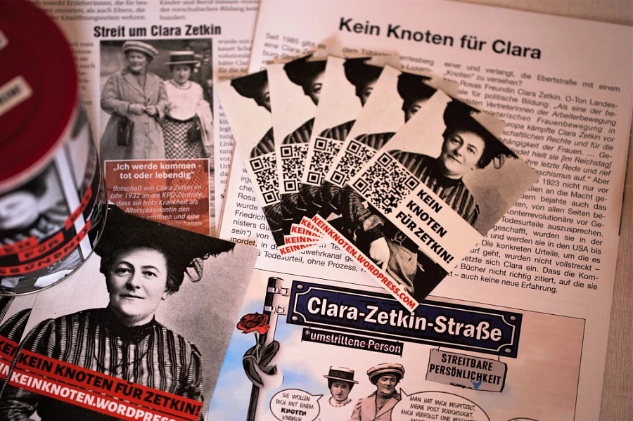 Die Diskussion darüber, ob Clara Zetkin als problematische Persönlichkeit eingestuft wird und somit die Clara-Zetkin-Straße mit einem (dauerhaften) Knoten markiert werden soll, geht in die nächste Runde. Am Donnerstag, den 5.10. tagt der Ausschuss für Kultur, Bildung und Soziales im Rathaus und will darüber eine Entscheidung treffen. Im Vorfeld ruft das Aktionsbündnis "Kein Knoten für Zetkin" zu einer Kundgebung auf (ab 16 Uhr, Marktplatz Tübingen). Das Aktionsbündnis protestiert gegen die Empfehlung der städtischen Kommission, Clara Zetkin als demokratiefeindlich einzustufen. Insbesondere konnte das Bündnis die Argumentation, Zetkin hätte an Justizverbrechen mitgewirkt und Todesurteile befürwortet, mit historischen Quellen widerlegen.