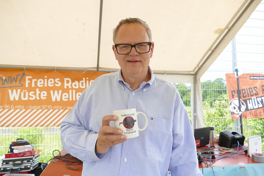Natürlich kennt Ulli Potofski auch Horst Hrubesch und schätzt ihn als angenehmen und vor allem friedlichen Zeitgenossen. Das betont er im Gruß an das Kommando Horst Hrubesch angesichts des Maschinengewehrs im Logo besonders und erwähnt in diesem Zusammenhang eine weitere Leidenschaft von Horst Hrubesch: Das Angeln.